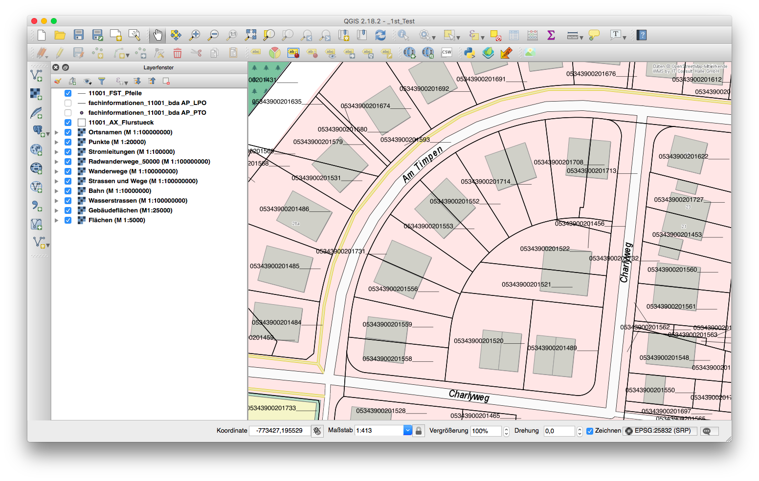 In Sachsen-Anhalt – dem „Land der Frühaufsteher“ – ist so z. B. schon das Anzeigen der Flurstücksnummer aus „datenschutzrechtlichen Gründen“ nicht erlaubt, siehe aktuelles Beispiel: in der MZ: http://www.mz-web.de/25477176. Ganz anders in NRW, dort werden die Flurstücke inkl. ihrer Flurstücknummer nicht nur auf den für jeden online verfügbaren Karten angezeigt, sondern seit Kurzem auch als OpenData für jedermann downloadbar angeboten. Ich hab’s probiert, klappt prima und ist ganz einfach, so ohne Beschränkung (siehe unten). Und in RLP kann man die FST-Nummern auch ohne Probleme öffentlich sehen (siehe: http://map1.naturschutz.rlp.de/kartend…z/index.php)