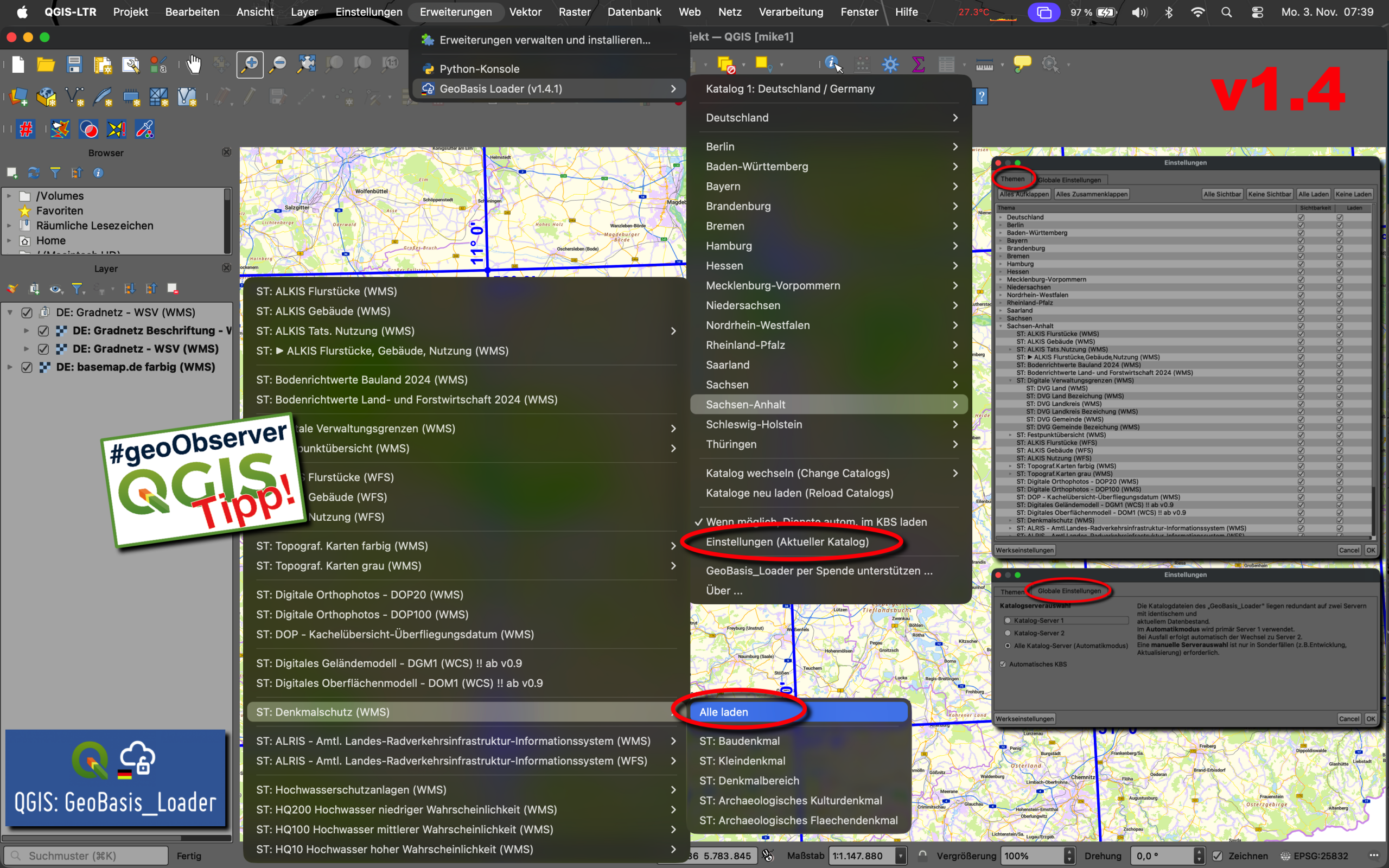 Nach fünf Monaten ist nun seit letzten Freitag eine neue Version des QGIS-Plugins „GeoBasis_Loader“ [1], die v1.4 im offiziellen QGIS Plugin Repository [2] verfügbar. Folgende Neuerungen erwarten Euch: