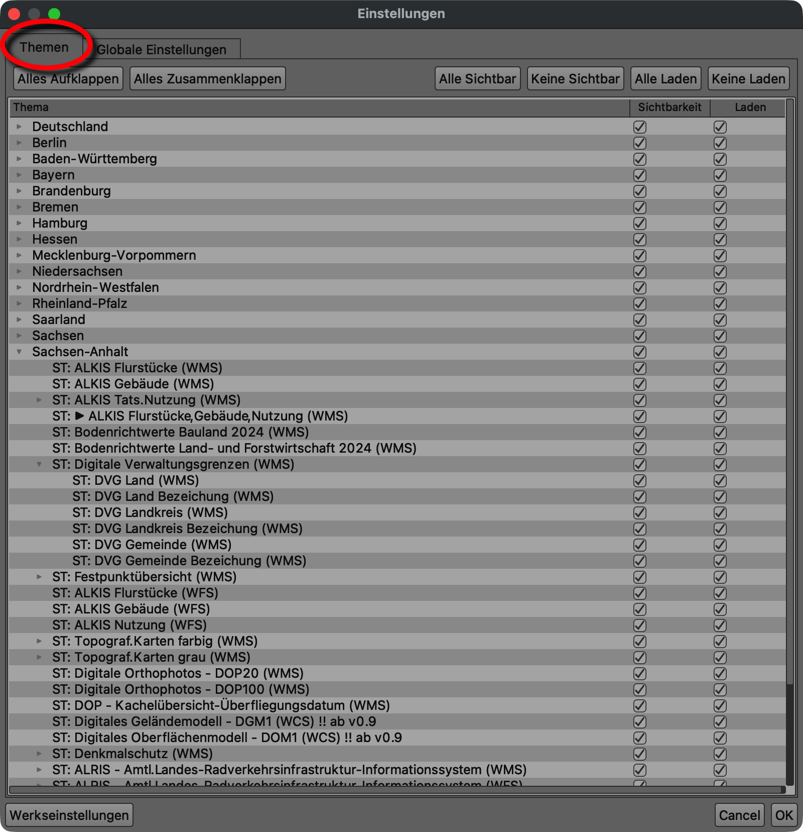 - Neu geladene Themen werden immer ganz oben im Layer-Fenster angeordnet