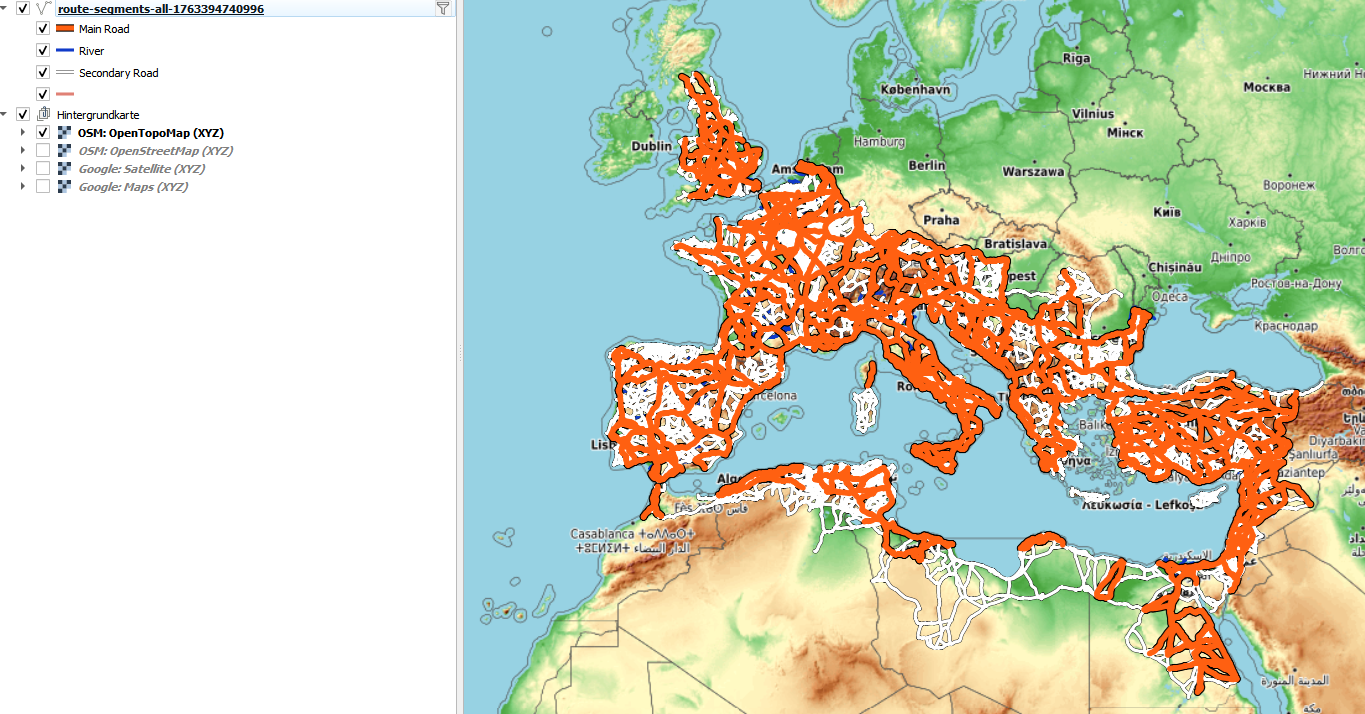 Zu Illustrationszwecken sollen die Daten aus dem Blog-Eintrag „itiner-e: Alle Wege führen nach Rom?“ dienen.