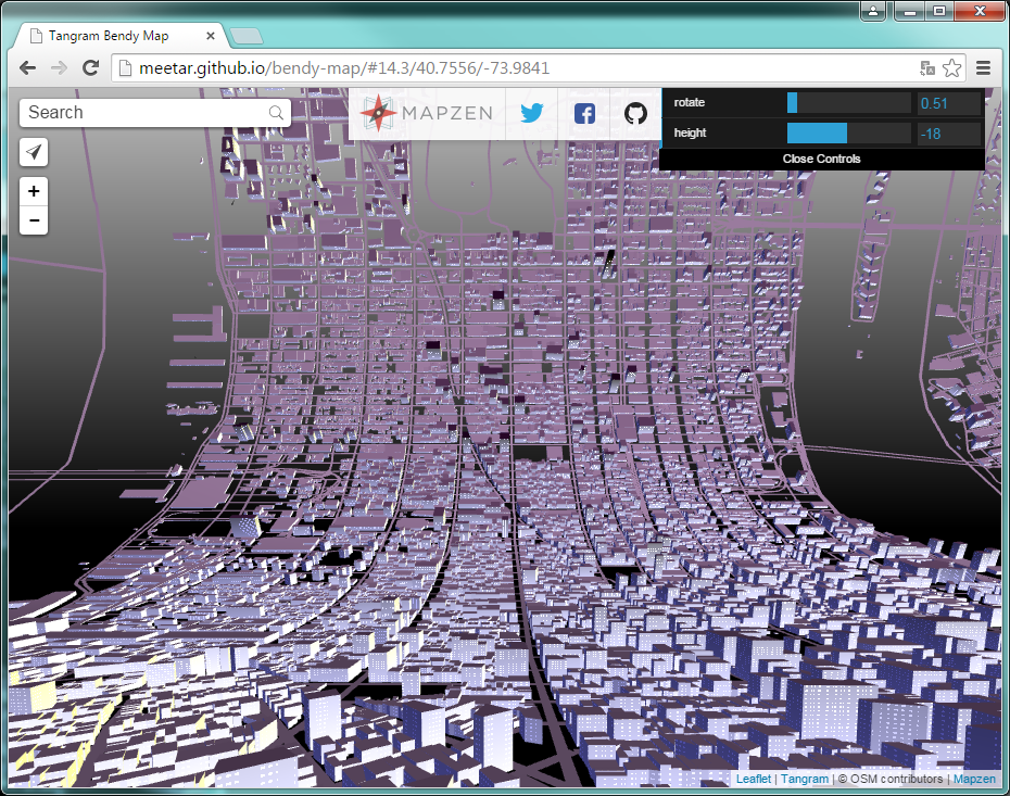 Und ich dachte schon, das kennst Du doch schon alles, naja, eben fast alles. Aber heute bin ich auf auf einen interessanten Tweet gestoßen „Inception Mapping„. Vorn 3D, im Hintergrund eine nach oben gewölbte 2D-Darstellung der Karte und damit erreicht: eine horizontlose Darstellung, die den Betrachter besser führen soll, da er sozusagen in Fahrt-/Laufrichtung voraus schauen kann. Klingt plausibel, in jedem Fall interessant.