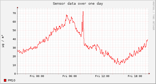 Die Registrierung dauerte etwas, ich war vielleicht auch etwas ungeduldig (Sorry an die Leute, die ich genervt habe 😉 nun ist mein Sensor auch auf der Karte Online und das war schließlich unser Ziel 🙂 Heute (16.02.2018) hatten wir hier übrigens kurz nach 8:00 Uhr eine signifikante Feinstaubspitze, ich hoffe, es war die WG unter uns, die einfach nur am Fenster geraucht hat 😉